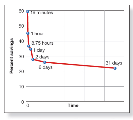 saving 곡선이 보존 간격의 기능으로써 절감 효과를 나타내고 있음