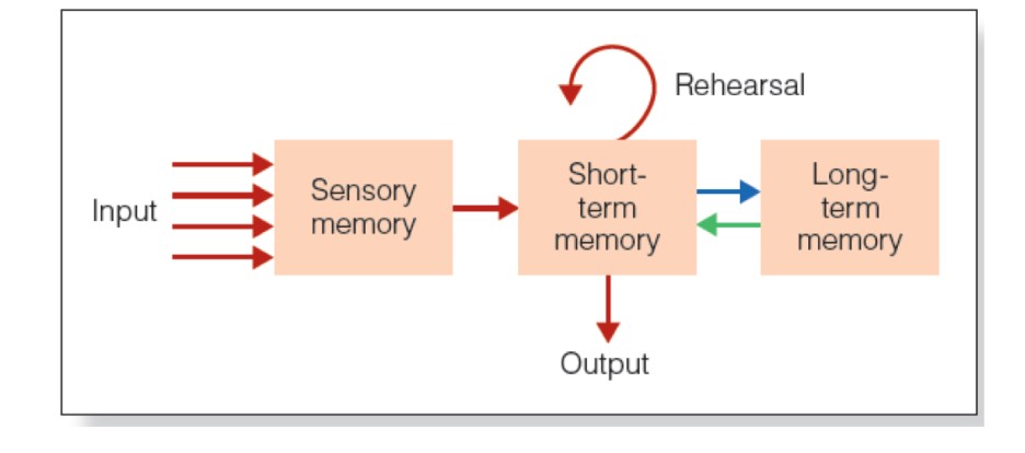 앳킨슨과 쉬프린은 기억 체계가 여러 개의 기억 저장소로 이루어진 중다 저장소로 구성되어 있다고 주장했다. (sensory, short, long)
