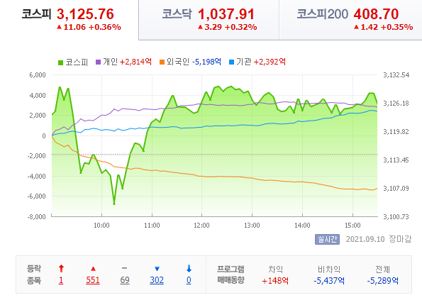 - 하락업종 : 은행(-3.33%), 운수장비(-1.39%), 의료정밀(-1.36%) 등