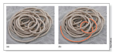 Figure 3.18 (a) Rope on the beach. (b) Good continuation helps us perceive the rope as a single strand.