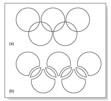 Figure 3.19 The Olympic symbol is perceived as five circles (a), not as the nine shapes in (b).