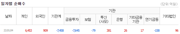 이어 "국내 증시는 네이버와 카카오 등 인터넷과 넷마블, 펄어비스 등 게임이 약세를 보였다"며 "2월부터 18% 가격 인상을 예고한 시멘트 업종과 5일부터 개막하는 CES2022를 앞두고 현대차와 LG전자 등 로봇 관련 사업을 영위하거나 계획을 발표한 기업 주가가 강세였다"고 했다.