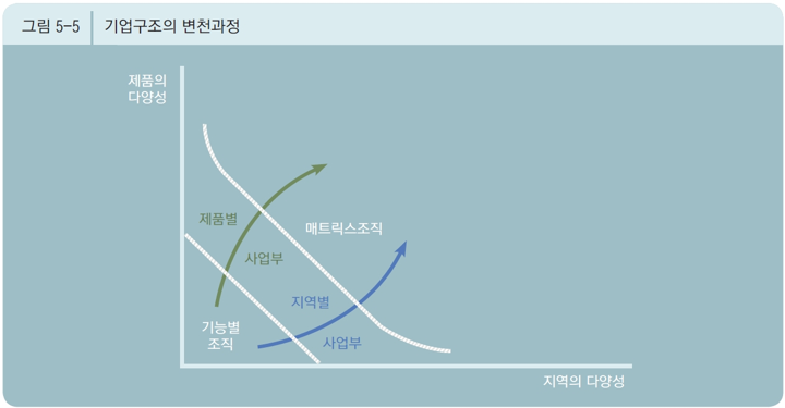 > 다양한 부업으로 구성된 회사를 효과적으로 관리하기 위한 구체적인 통제, 통합, 조정 시스템이 필요